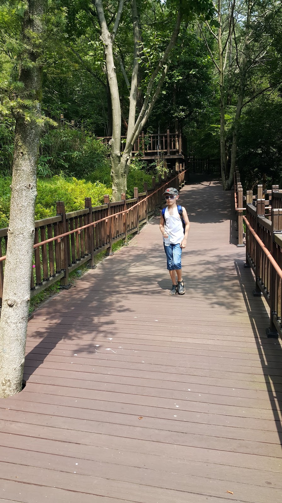В самом начале парка небольшой кусочек леса с деревянными дорожками и мостками
